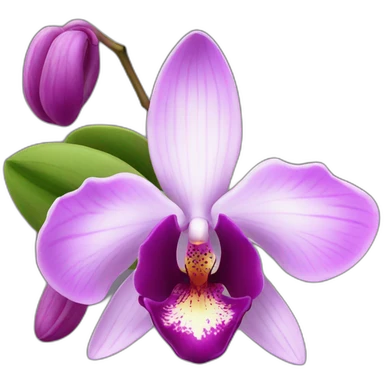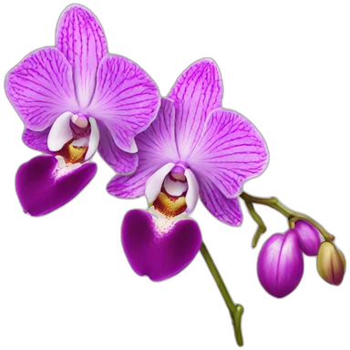 Aesthetic butterfly with purple and pink wings sitting on a dark purple bouquet of Orchids in a pastel pink vase emoji