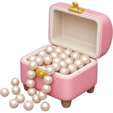 A jewelry box pink with legs filled with pearl beads of various sizes, some of which are spilling out emoji