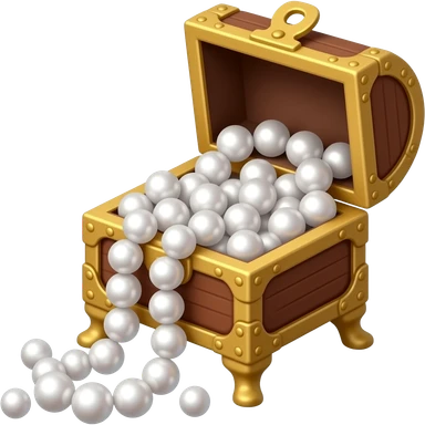 A jewelry box with legs filled with pearl beads of various sizes, some of which are spilling out emoji