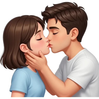 A cuple of a boy and a girl. They love each other a lot. The boy is tall and brunette anda the girl is a bit smaller and also brunette, both of them are white emoji