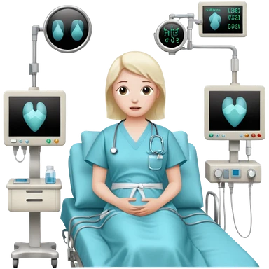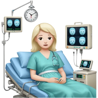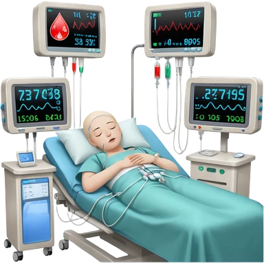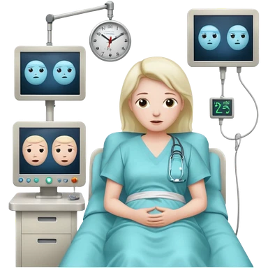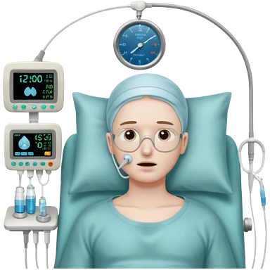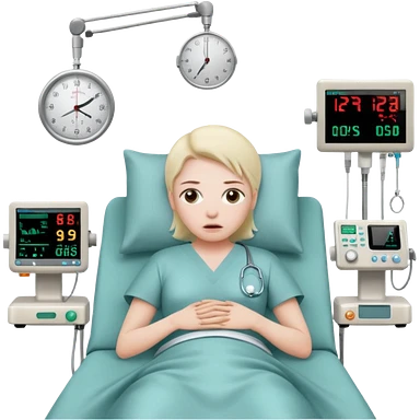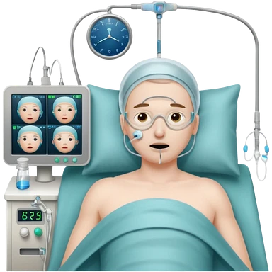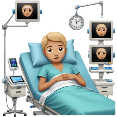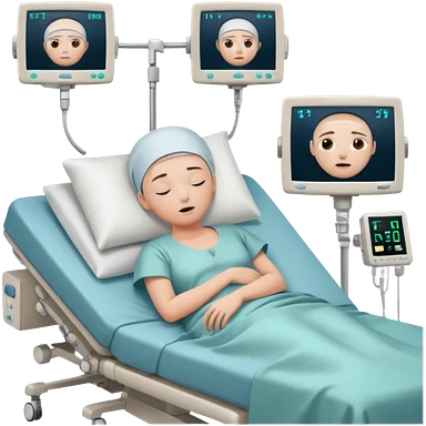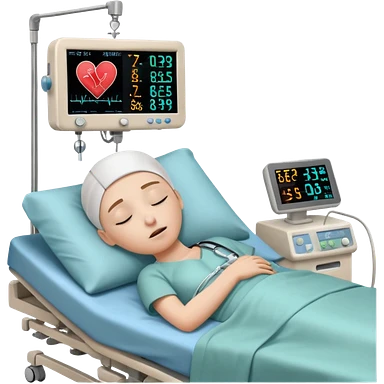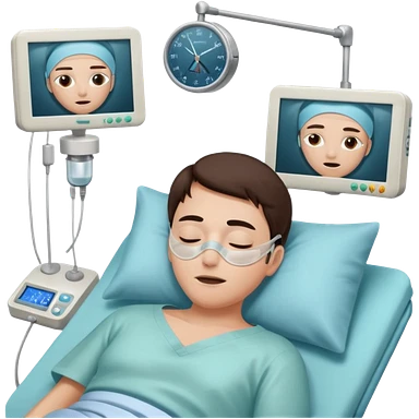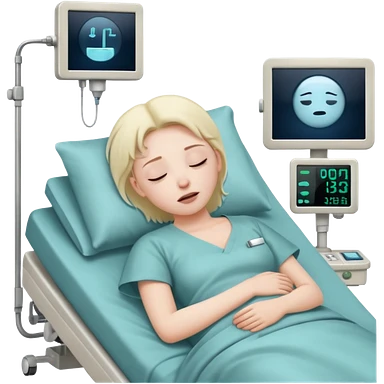 a PATIENT waking up before a surgery, with monitors and sleeping emoji