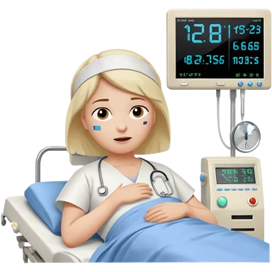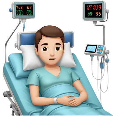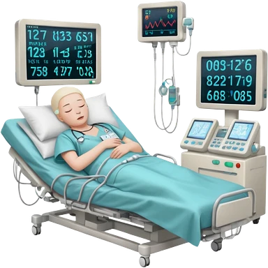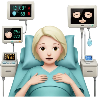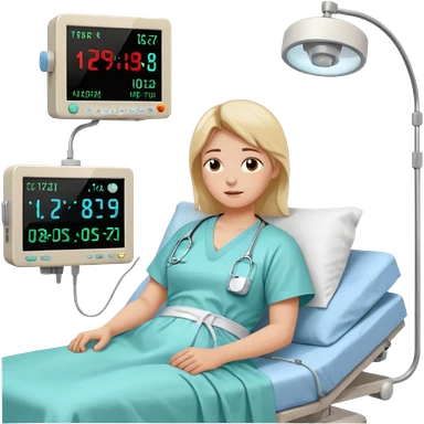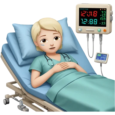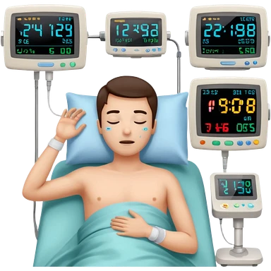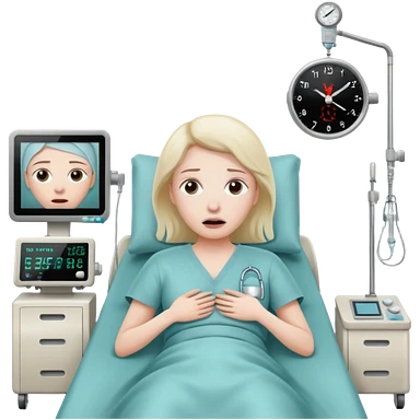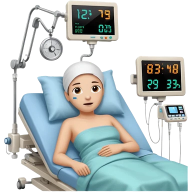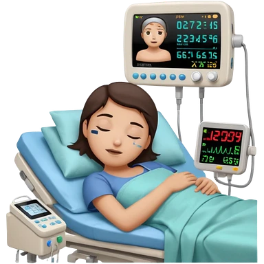 a PATIENT waking up before a surgery sleeping. And monitors with vitals and numbers emoji