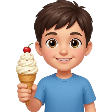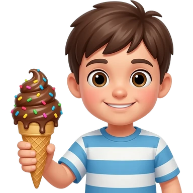 a boy hold a ice cream change his ice cream into brown color with sprinkles emoji