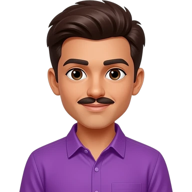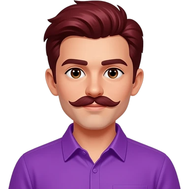 a boy in vibrant purple shirt with mehroon hairs and long mostache emoji