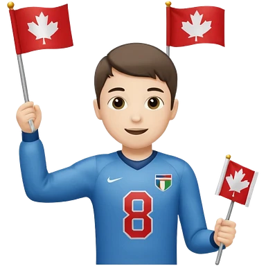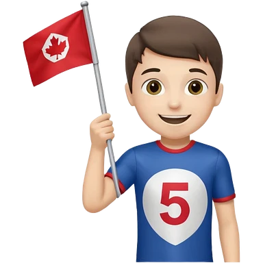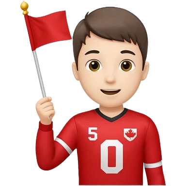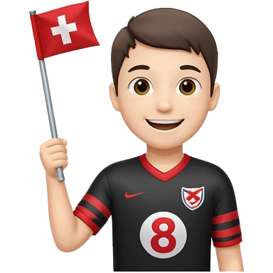 A boy in a jersey, excitedly lifting a small handheld flag and shorts with simple sport shoes emoji | AI Emoji Generator