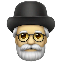 Overweight man with dark hair wearing miniature skullcap on head, beard and glasses. emoji