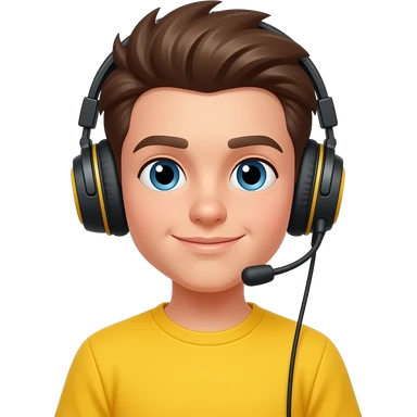 boy gamer in vibrannt yellow shirt and wear headphones emoji