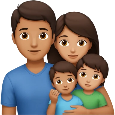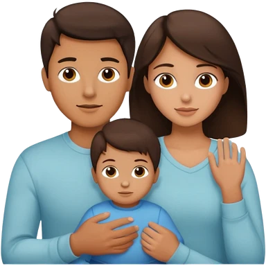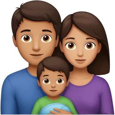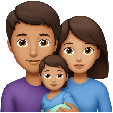a brunette boy with his girlfriend and brunette 2 year old emoji