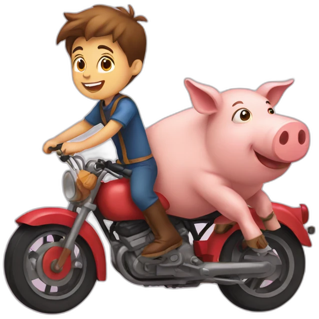 a boy riding a pig and holding a sword on the Great Wall emoji