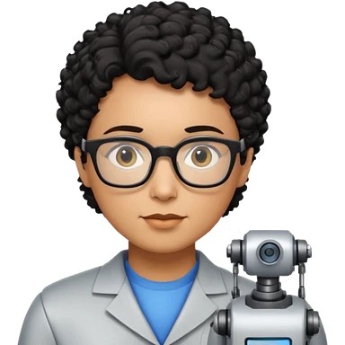 a boy robotics teacher, with black curly short hair, wearing glasses emoji | AI Emoji Generator