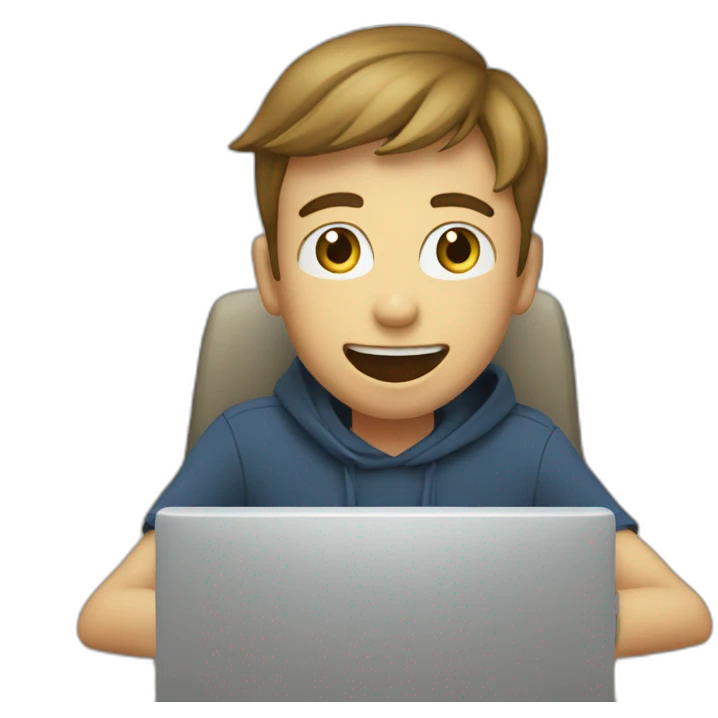 a boy sitting on a computer with excitement (no eyes , no nose , no mouth) emoji | AI Emoji Generator