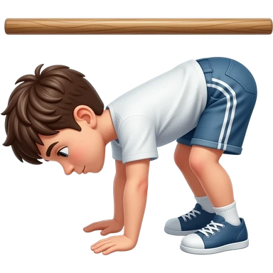 a boy leaning backwards under a wooden pole doing the limbo emoji