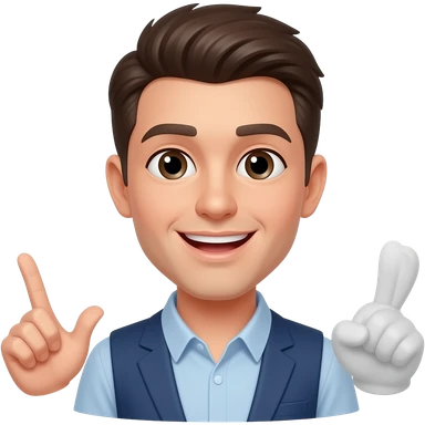 A boy who has his left \ hand say 6 and his right hand / say 7 and make the kid shrug and make him smile and white emoji | AI Emoji Generator