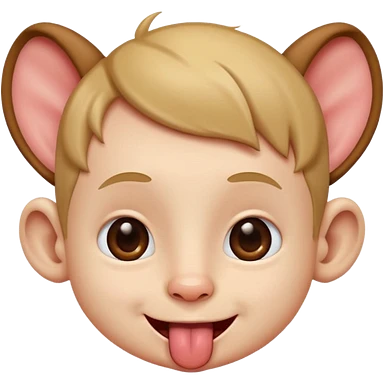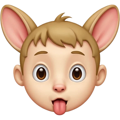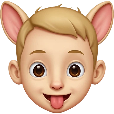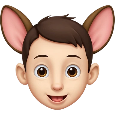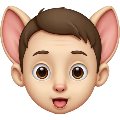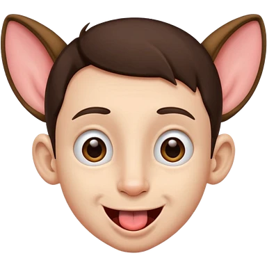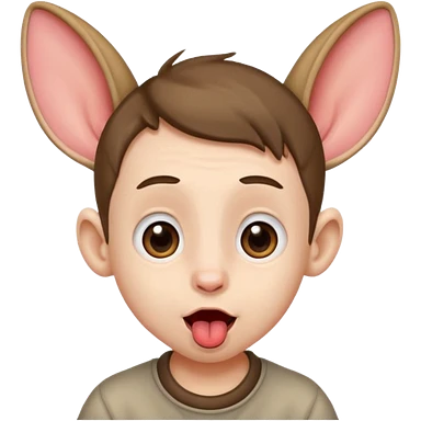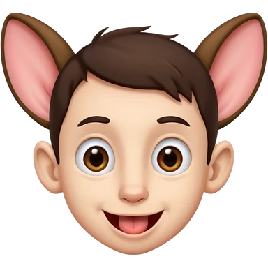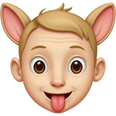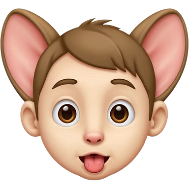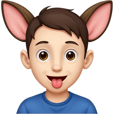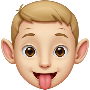 a brunette boy with small eyes with big human ears and with his tongue out emoji