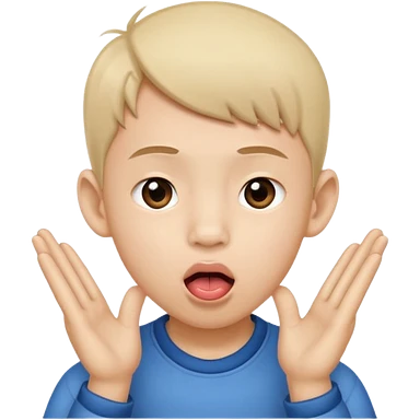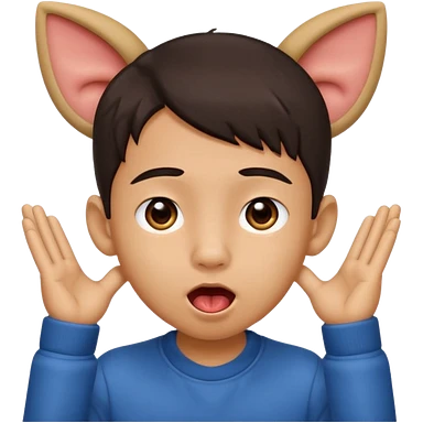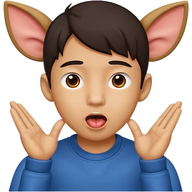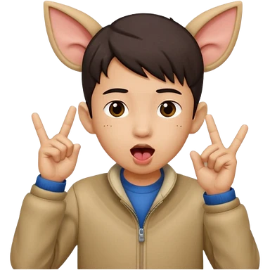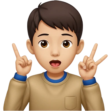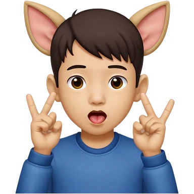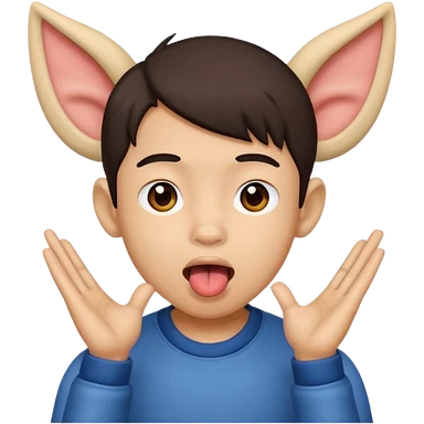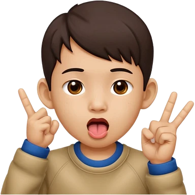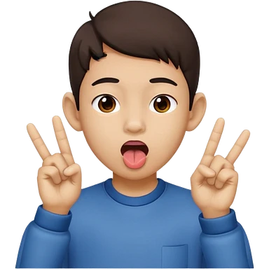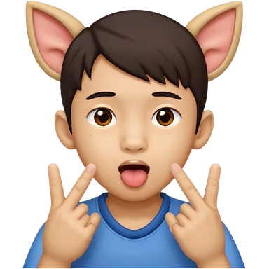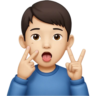 a boy with asian eyes holding his ears with 2 fingers and with his tongue out emoji | AI Emoji Generator