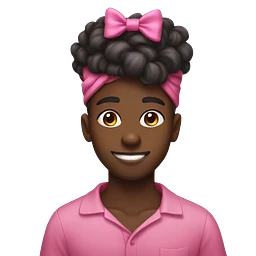 14 year old black boy with grown out buzz 4c hair forming into small dreadlocks looks like spikes he is wearing a red polo and his toungue is out very big and has a white shiny gooey splotch on his toungue emoji