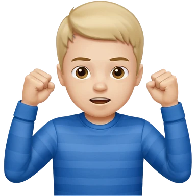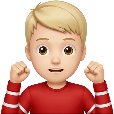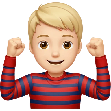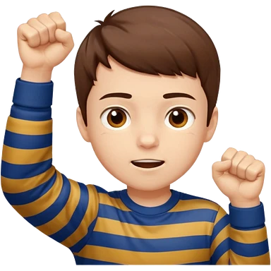 A boy with stripes across his cheeks, raising his fists in excitement. emoji