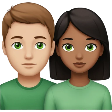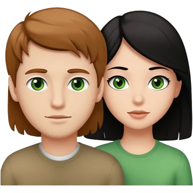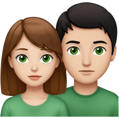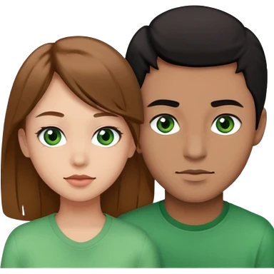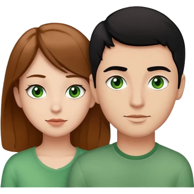 A boyfriend with light brown hair and green eyes next to his girlfriend with brown eyes and black hair emoji | AI Emoji Generator
