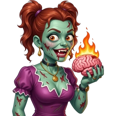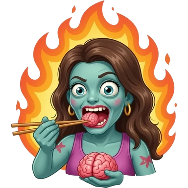 crazy zombie lady on fire eating a brain with chopsticks emoji