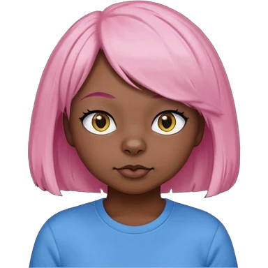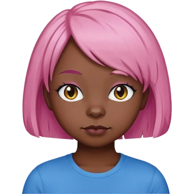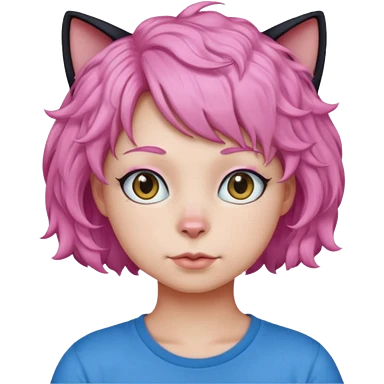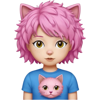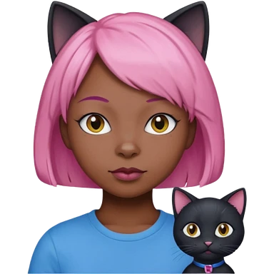 Black cat wearing a short pink hair wig, blue T-shirt emoji