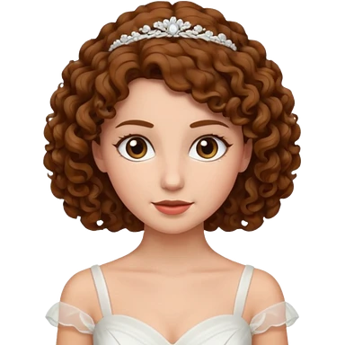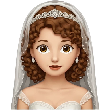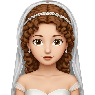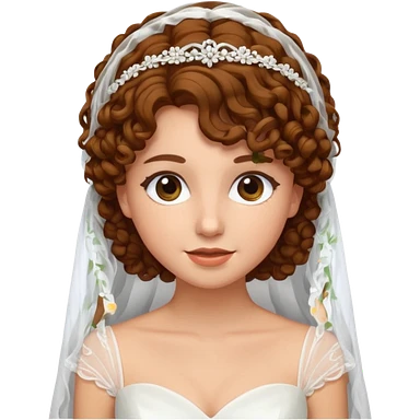 A bride with a curly brown hair and veil emoji | AI Emoji Generator