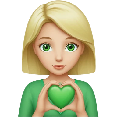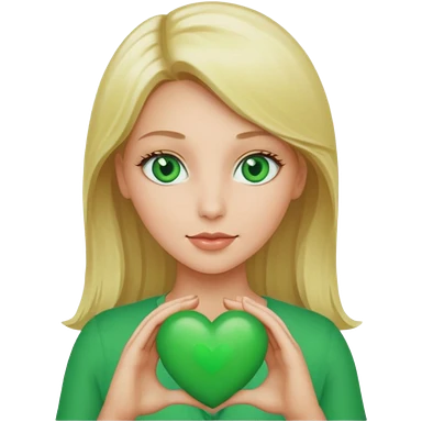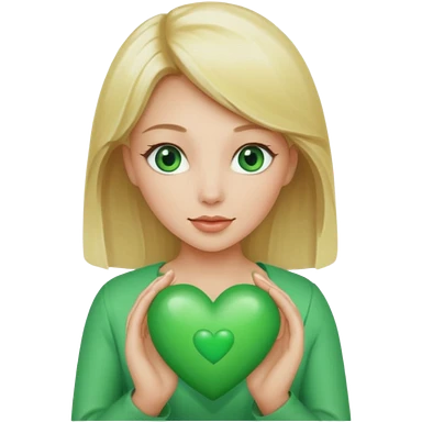 Create a blonde less angelic women with green eyes holding a green hearth emoji