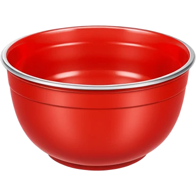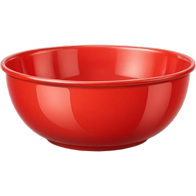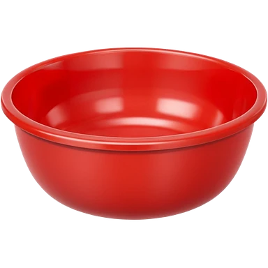 A bright red plastic household bowl. Smooth glossy surface, soft studio lighting, subtle shadow underneath. Product-style photography, crisp focus, minimalistic composition. emoji | AI Emoji Generator