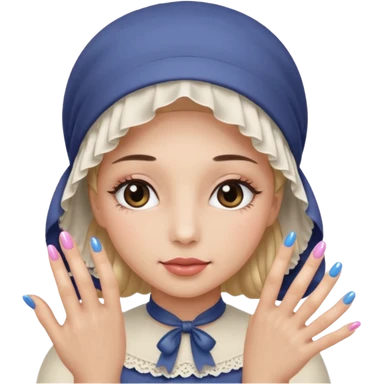 Minimalist emoji of a woman in a white bonnet and red cape, inspired by Handmaid's Tale emoji