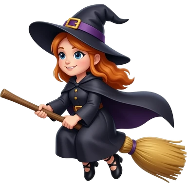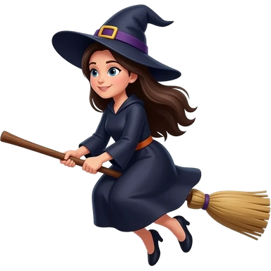 a witch flying on a broomstick, with fair skin and long dark hair emoji