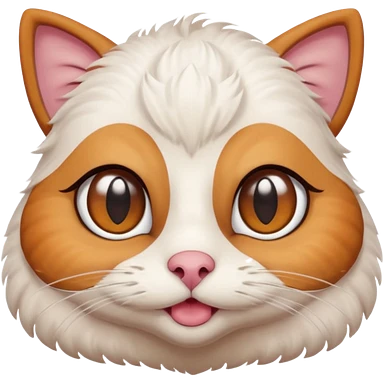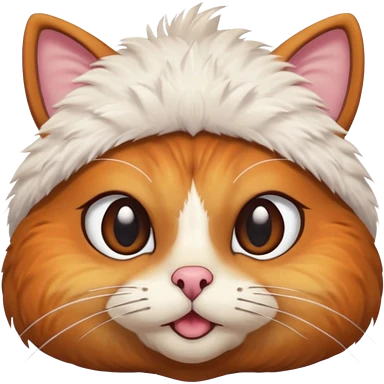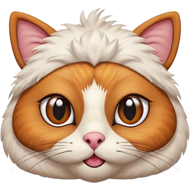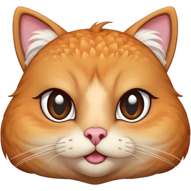A shy but handsome turkey cat with a uni-brow batting his lashes and blushing emoji