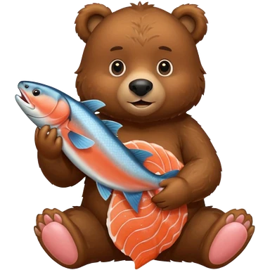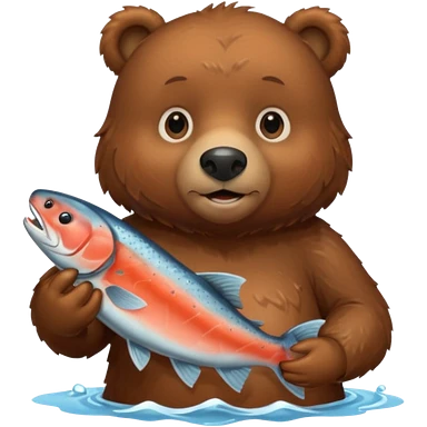 A brown bear holding a salmon emoji