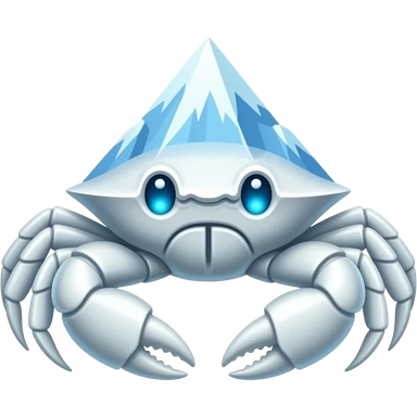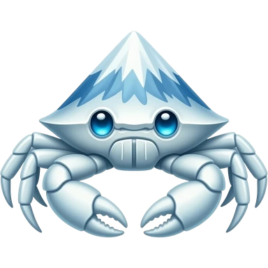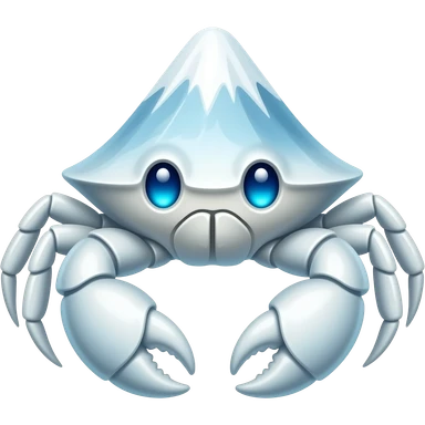 Ice White crab with Mount Everest on its back facing with glowing blue eyes emoji