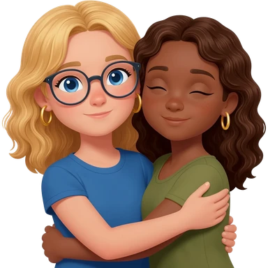Girl with blonde hair and hazel eyes hugging a girl with brown hair and blue eyes emoji