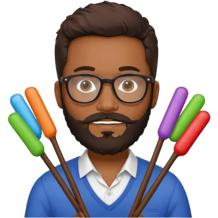 A brown Guy with Cartier style glasses with a beard, holding a bunch of rubber sticks each a different color emoji | AI Emoji Generator