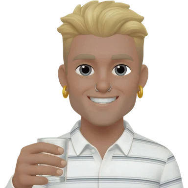 a brown hair guy with septum and earings with a smile drinking a shot emoji | AI Emoji Generator