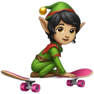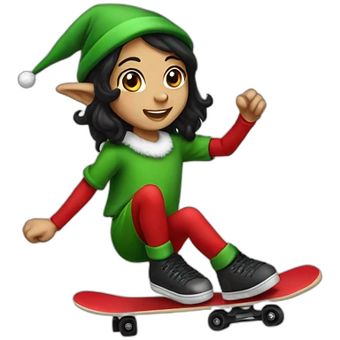 black-haired girl mid-wipeout on a skateboard, arms flailing, energetic, fun emoji style emoji