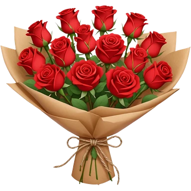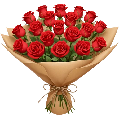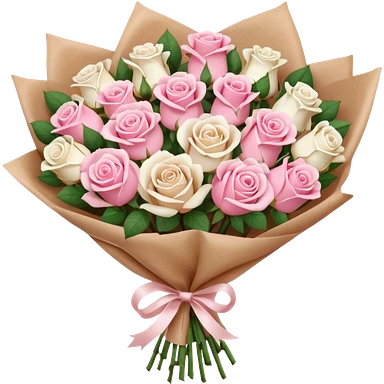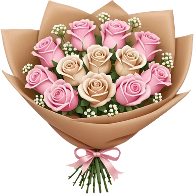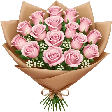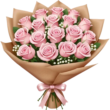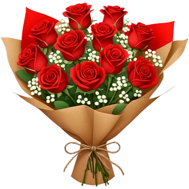 A brown paper-wrapped bouquet of fresh roses and baby’s breath emoji | AI Emoji Generator