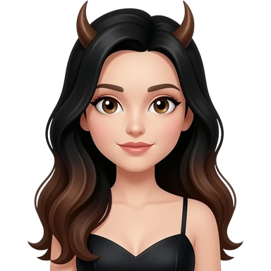 black+brown long hair, siren eyes, point nose, black dress cute emoji
