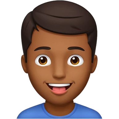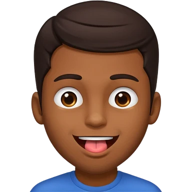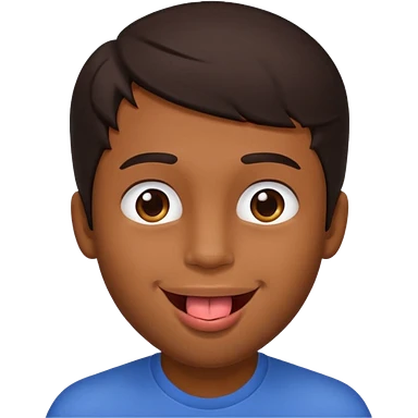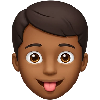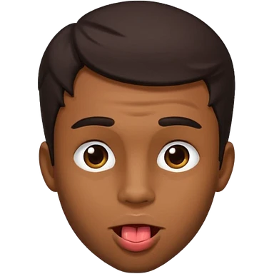 A brown skin guy with dark hair that is his covering forehead, his head is tilted back a bit and his tongue is out emoji | AI Emoji Generator