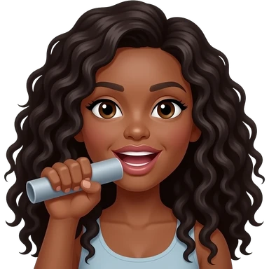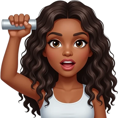 A brown woman with dark long curly hair and big pouting lips Holding her hand up as if holding an invisible cylinder emoji | AI Emoji Generator