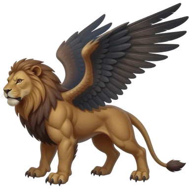 A red-brownish, white, and black gryphon, full body emoji