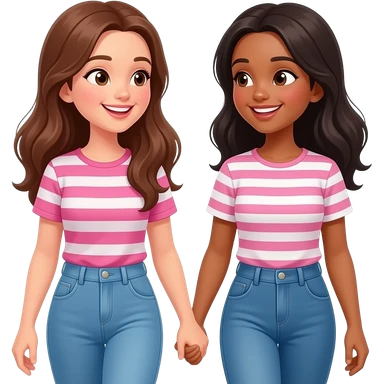 A brunette and a black haired girl walking while smiling and talking, they are beat friends emoji