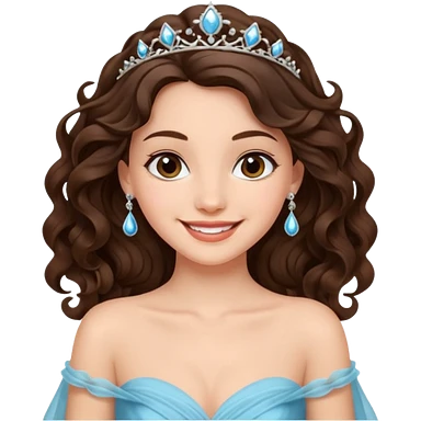 A brunette curly hair girl with a princess crown smiling gently. emoji | AI Emoji Generator