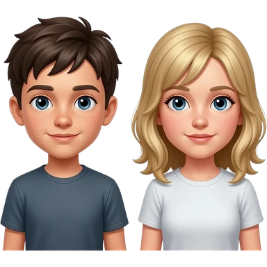 A couple, the girl is brunette with long and straight hair, big lips and brown eyes, small nose and straight eyebrows. And the guy is dirty blond with big brown eyes, a light mustache and great lips emoji