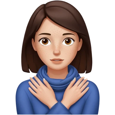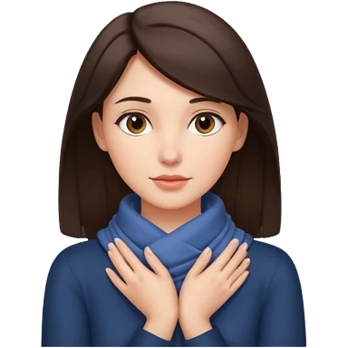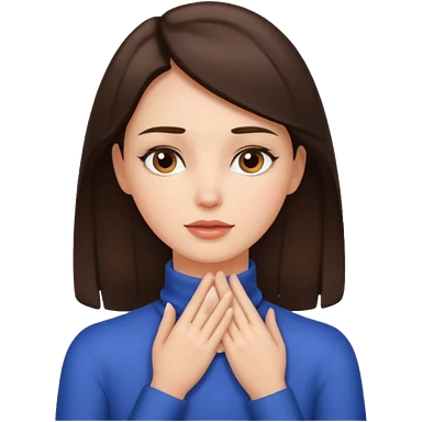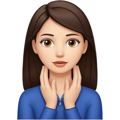 a brunette woman with two hands wrapped around her neck emoji | AI Emoji Generator