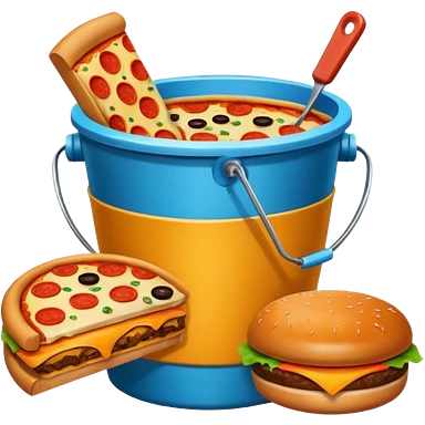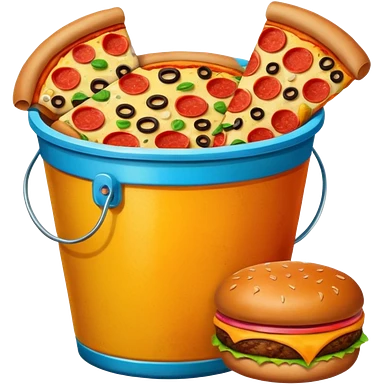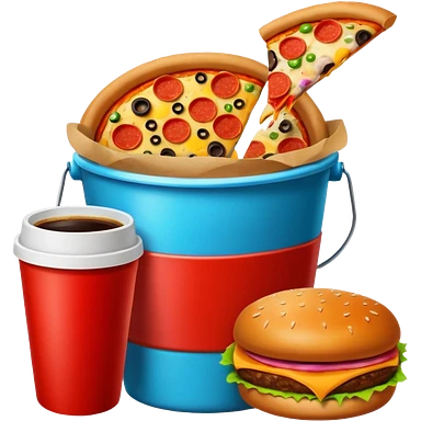 ganarate a emogi a bucket of food with pizza buerger coffee add fries cold coffe to emoji