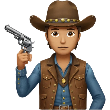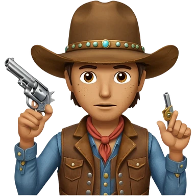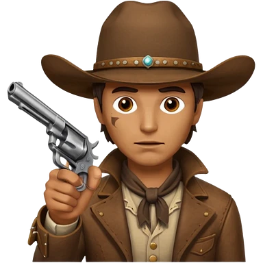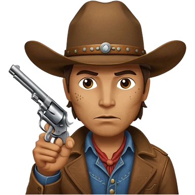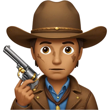 A bulldog wearing a cowboy hat, covering his mouth with a scarf so he wouldn't be recognized, pointing a revolver at you, telling you to hand over your money. emoji | AI Emoji Generator