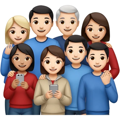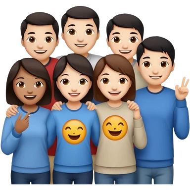 a bunch of friends emoji and they are chinese but wear normal clothes emoji