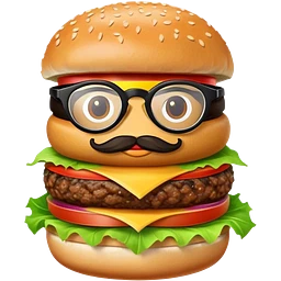 A burger with glasses and a smile emoji | AI Emoji Generator
