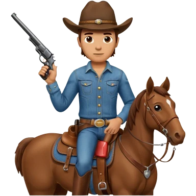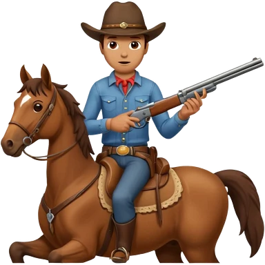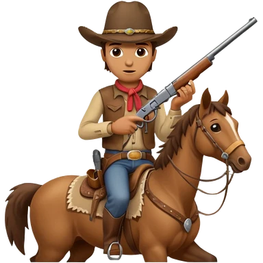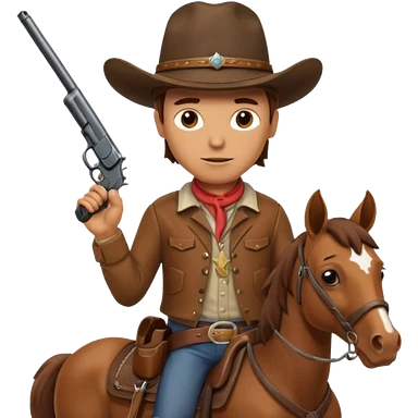 A cowboy that is holding a gun and and having a horse inside emoji